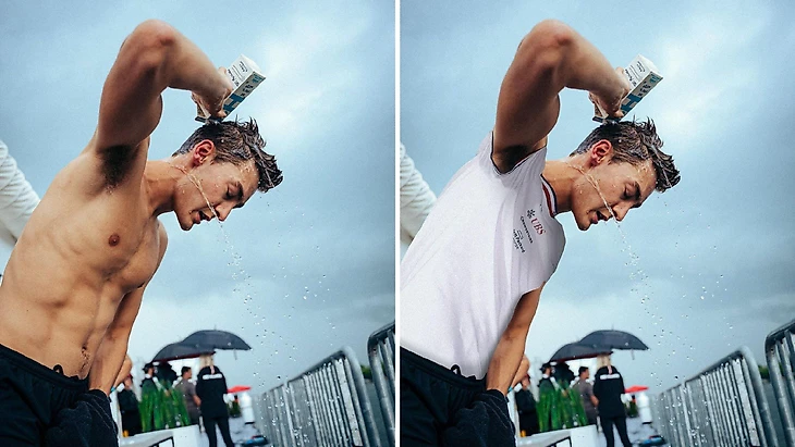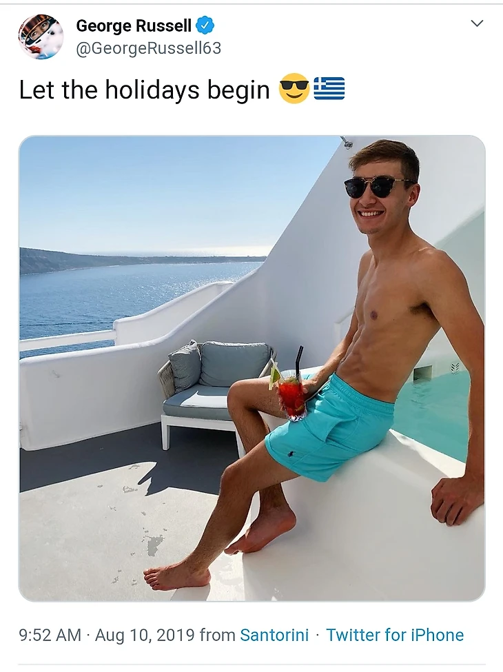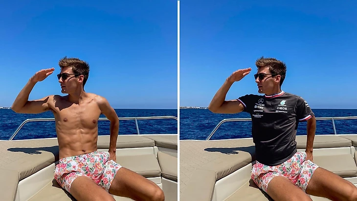 Но Джордж Расселл, кажется, слегка перебирает – у гонщика «Мерседеса» настоящее чемпионство в фотографиях без рубашки. Такие кадры стали его фишкой еще с дебюта в 2019-м.