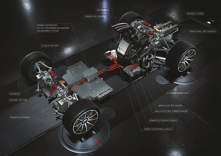 AMG пытается не просто вытащить мотор из болида и засунуть в дорожное авто, а выстроить машину вокруг гоночной силовой установки. Что же AMG может сделать с современным гибридным мотором V6 объемом 1,6 литра для решения всех проблем? Уже известно: конструкторы обрезали предельное число оборотов с 15 тысяч до 11 тысяч. Вопросы повседневного охлаждения и холодного старта все еще висят в воздухе».