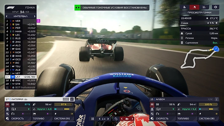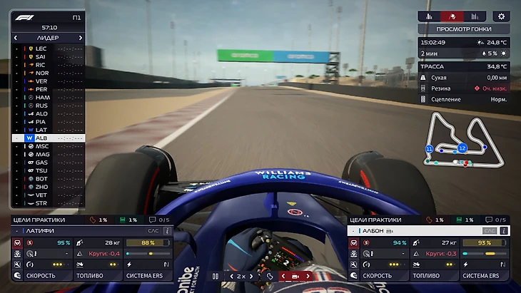 В гонке у вас есть несколько параметров, которыми вы можете управлять. Как и в ММ, тут есть интенсивность использования шин топлива и ERS, но вдобавок к этому вы можете сказать своему пилоту держаться подальше от поребриков, если у вас проблема с днищем, или не держаться в грязном воздухе, чтобы не убивать покрышки.