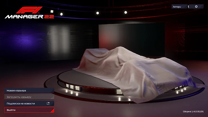 Итак, можно запускать игру. В игре нас сразу после запуска и предупреждений об эпилепсии встречает реальное интро Формулы-1 в сезоне-2022. После него мы попадаем в основное меню, которое довольно простенькое, всё в классике жанра спортивных менеджеров.