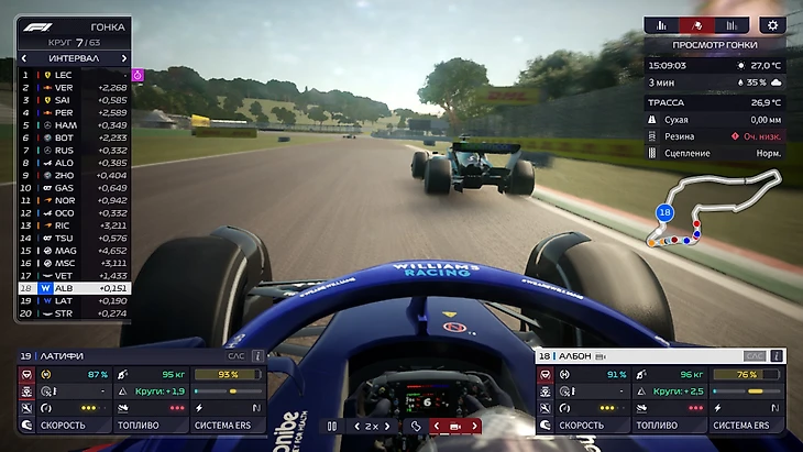 Сейчас в игре огромная проблема с DRS, с ним невозможно оторваться, и у вас получается такой паровозик, который обгоняет друг друга туда-обратно. DRS решает больше, чем состояние шин, заряд батарейки и всё остальное.