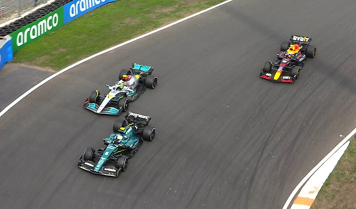 Одним из самых неоднозначных эпизодов Гран-при Нидерландов стал выезд отстававшего на круг Себастьяна Феттеля с пит-стопа прямиком в борьбу между Льюисом Хэмилтоном и Серхио Пересом. Гонщик «Мерседеса» стремился отыграть как можно больше времени после смены шин, чтобы побороться с Максом Ферстаппеном за победу, однако на 37-м круге внезапно уперся в «Астон Мартин» Феттеля и потерял несколько важных секунд.