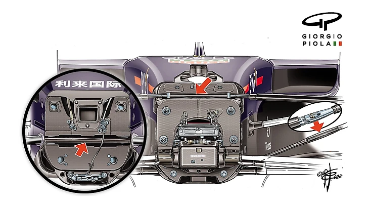 Это поколение аэродинамических правил привело к переоценке каждой командой наилучшего способа компоновки передней и задней подвесок. Переход «Ред Булл» на переднюю тянущую подвеску (после долгих лет использования толкающей подвески) и заднюю толкающую подвеску (после долгих лет использования тянущей подвески) является лишь отражением этого. Но именно детали передней подвески RB18 особенно интересны.