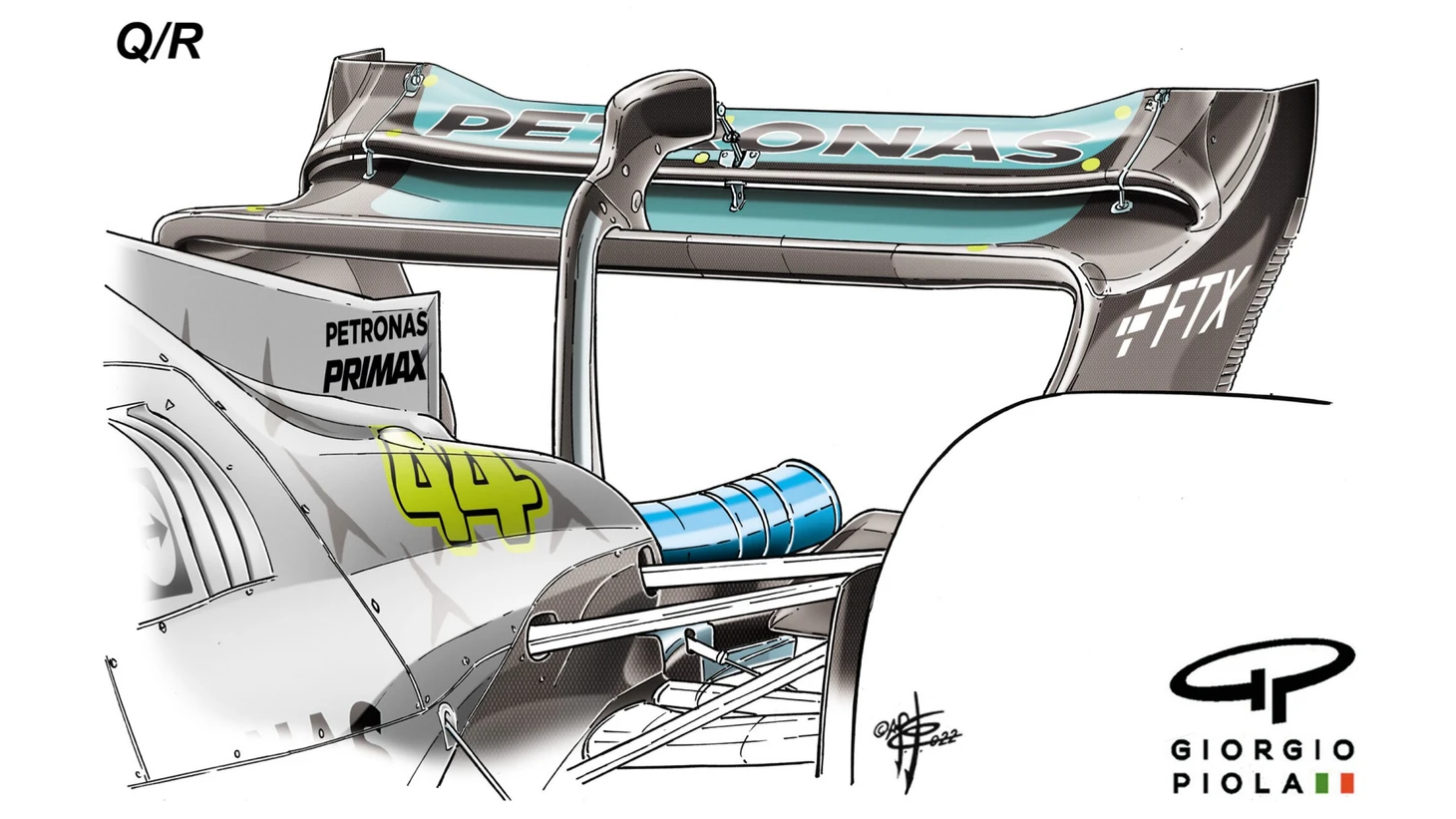 Они использовали чрезвычайно обрезанные задние закрылки, однобалочное крыло и очень плоскую основную плоскость. Для квалификации и гонки они даже убрали закрылки на задней кромке крыла. Несмотря на все это, «Мерседес» был самым медленным из троицы на прямых и на круге.
