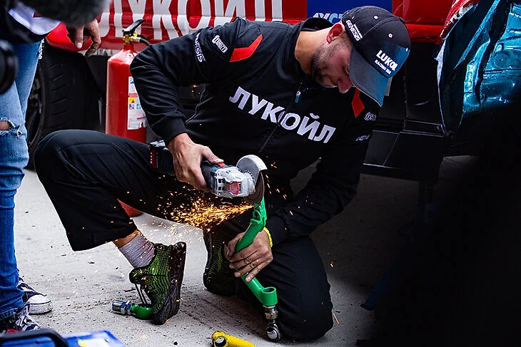 Сначала Андрея Астапова взял на таран Георгий Чивчян. В следующем заезде в него приехал уже Дмитрий Ермохин. К счастью, машина страдала не слишком сильно, да и у механиков между заездами было достаточно времени, чтобы подремонтировать автомобиль. Другое дело, что второй пилот коллектива – Григорий Гусев – тоже подкидывал работы команде!