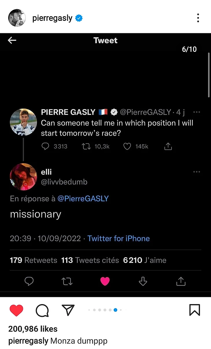 Причем даже сами гонщики после квалы не предполагали, где будут стартовать: к примеру Ферстаппен изначально представлялся четвертым, а затем ФИА отправила его на седьмое. Общий бардак выражен в этом ответе на твит лидера «Альфа Таури» Пьера Гасли (он сам запостил ответ у себя в соцсетях)