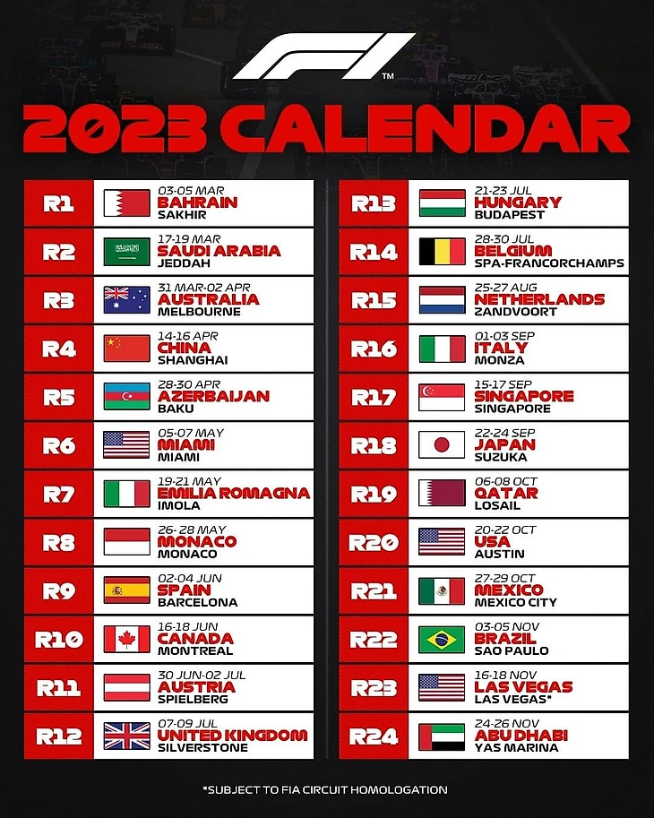 Доменикали тогда пообещал пока не переступать отметку в 23 этапа, но… Вот календарь на 2023-й – 24 Гран-при.