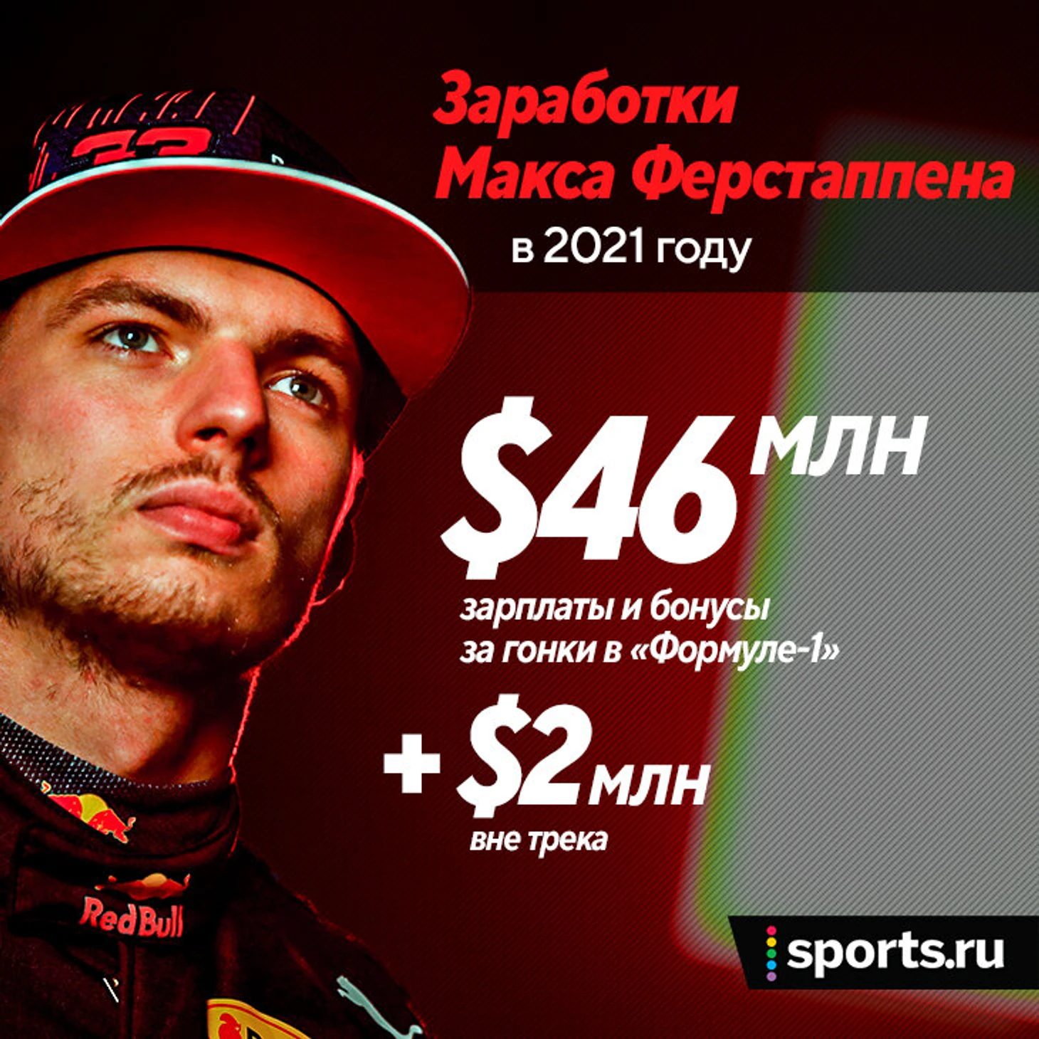 После первого чемпионского титула Forbes подсчитал заработки Макса за год – вышла огромная зарплата за гонки и всего $2 млн за активности вне трека (коммерция, спонсорские и рекламные контракты и бизнес).