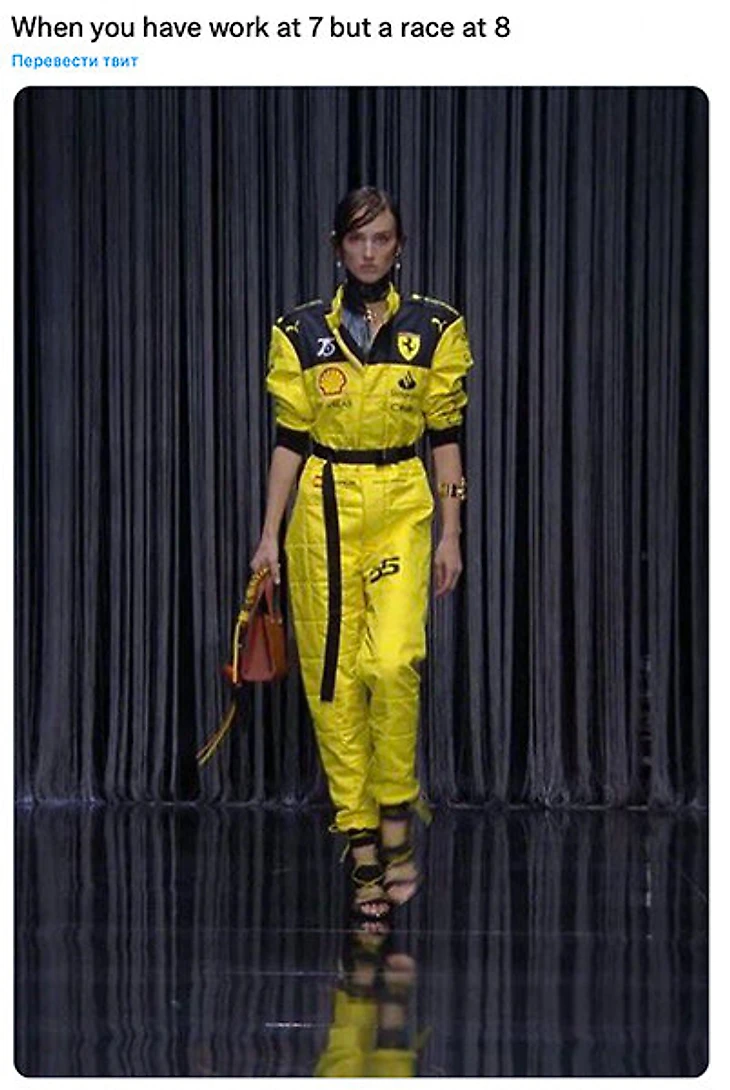 Гоночный комбинезон «Феррари» для «Ф-1» выставили на подиум Недели моды – что вообще происходит?