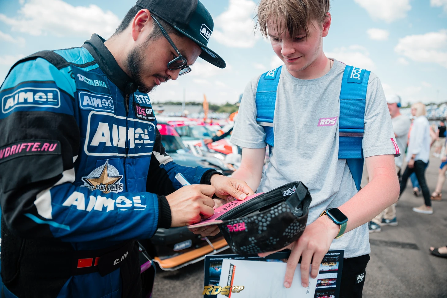 А вот раздача автографов идет активно на каждом этапе. За уик-энд спортсмен подписывает около 300 автограф-карточек, не считая бейсболок, футболок, фотографий и вообще всего, с чем к нему подходят фанаты за заветной подписью. Прибавьте к этому сотни селфи и фотографий, тысячи сообщений в чате с переводчиком, который помогает решать все насущные вопросы, и поймете, что пилот занят на протяжении уик-энда всегда. А не только когда находится за рулем дрифт-кара на трассе.