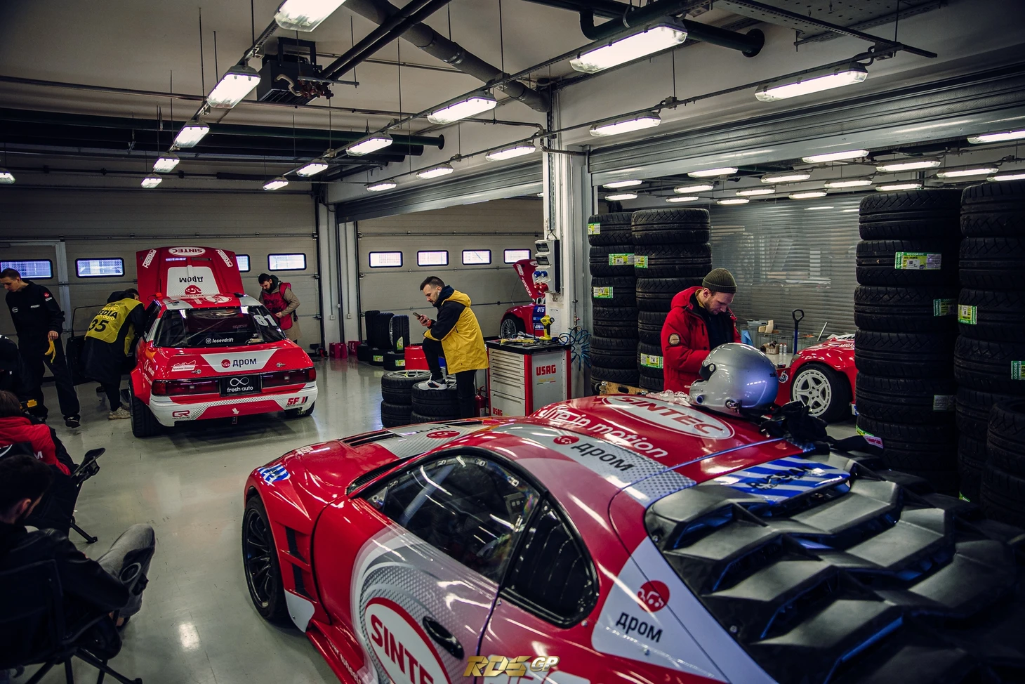 В том, что касается запасных частей, счет у команды тоже идет на тонны. В зависимости от того, какие машины участвуют в заездах, на каждый уик-энд SINTEC FRESH AUTO DRIFT берет с собой на трассу 3-4 тонны деталей, комплектующих и «расходников» для обслуживания и ремонта автомобилей. Над машиной каждого пилота колдуют по два механика, а лишнюю работу с них снимают волонтеры.