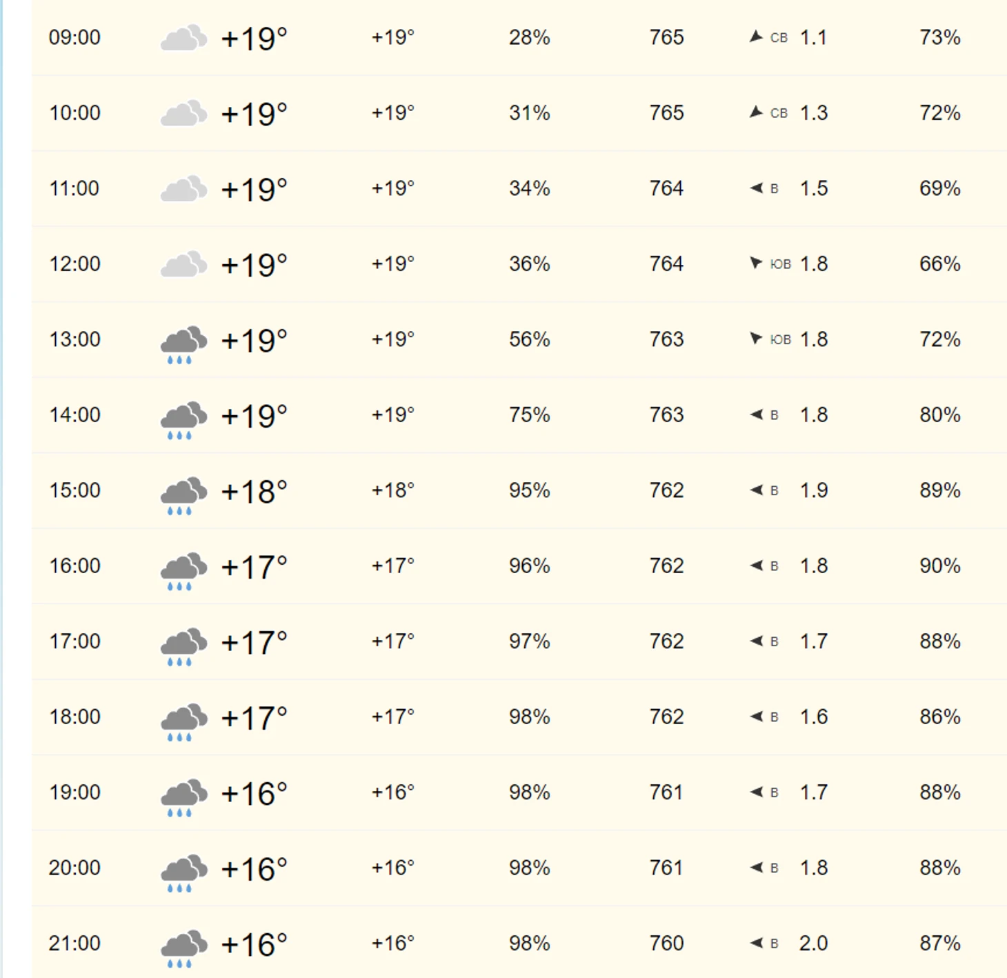Старт гонки намечен на 14.00 по местному времени. В 13.00 должен идти накрапывающий дождик, а вот спустя 1,5 - 2 часа должен пойти настоящий ливень.