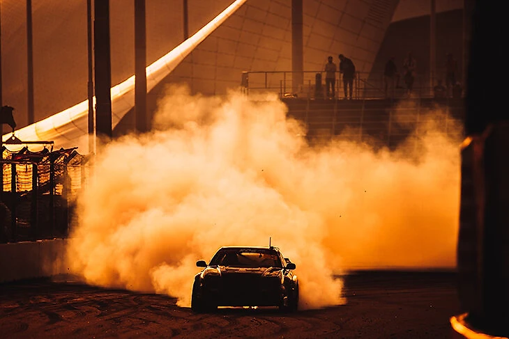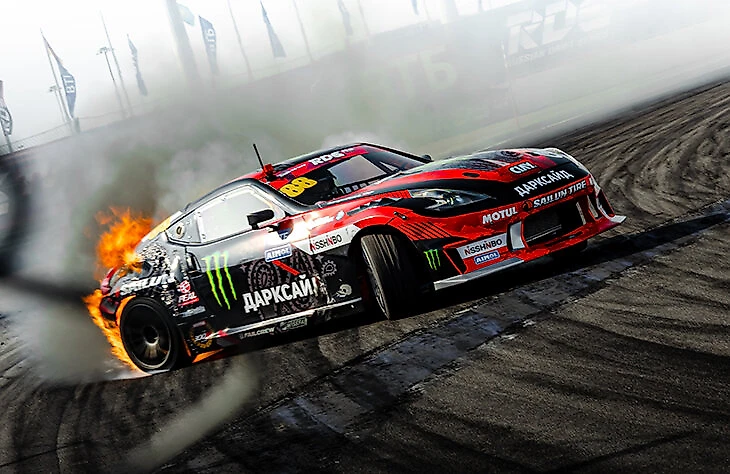 «Трасса – огонь!» – скажет каждый, кто увлекается или занимается дрифтом. Но настоящим огоньком здесь отметился Аркадий Цареградцев. В прошлом году во время квалификации его Nissan 370Z в очередной раз за сезон самовоспламенился. Только в Сочи Аркадий Петрович решил не останавливаться и в объятой пламенем «Зетке» жал газ до самого финиша. К счастью, все закончилось благополучно. Цареградцев без вреда для здоровья не только финишировал, но и добрался в итоге до 4 места в парных заездах.