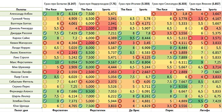 Рейтинг пилотов на Гран-при Японии (5.857):