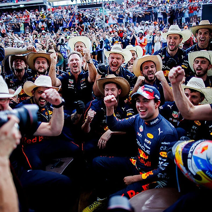 Шак снова эффектно привез на «Буллмобиле» кубок победителя к подиуму, но потом растворился в толпе. А необычный лимузин заполонили сотрудники «Ред Булл» – отмечали завоевание Кубок конструкторов!