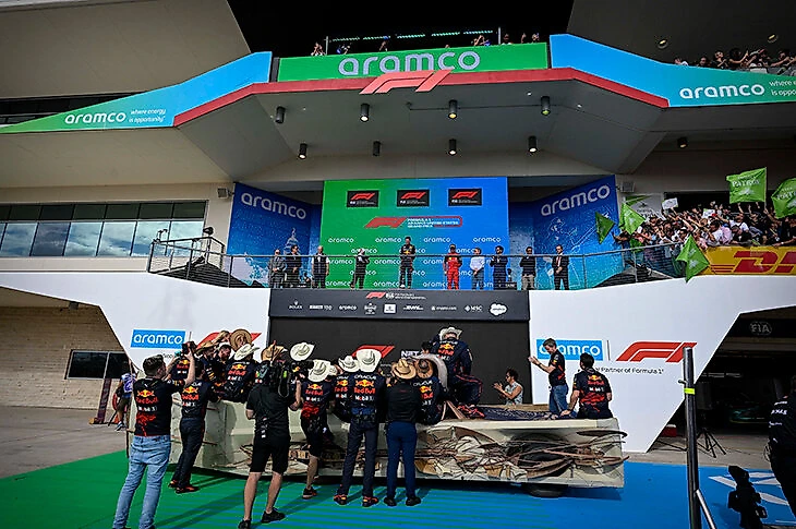 Худший взмах клетчатым флагом в истории от Тима Кука, Брэд Питт повсюду, Шакил О’Нил на индейском масл-каре – могучая атмосфера на «Ф-1» в Техасе