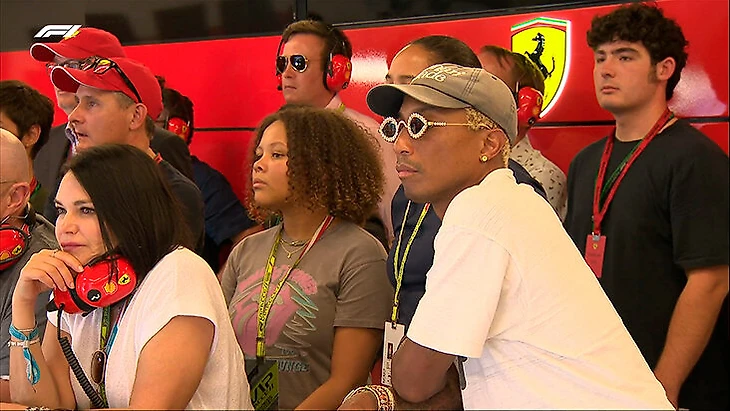 Еще один музыкальный исполнитель – Фаррелл Уильямс наблюдал за квалификацией в боксах «Феррари».