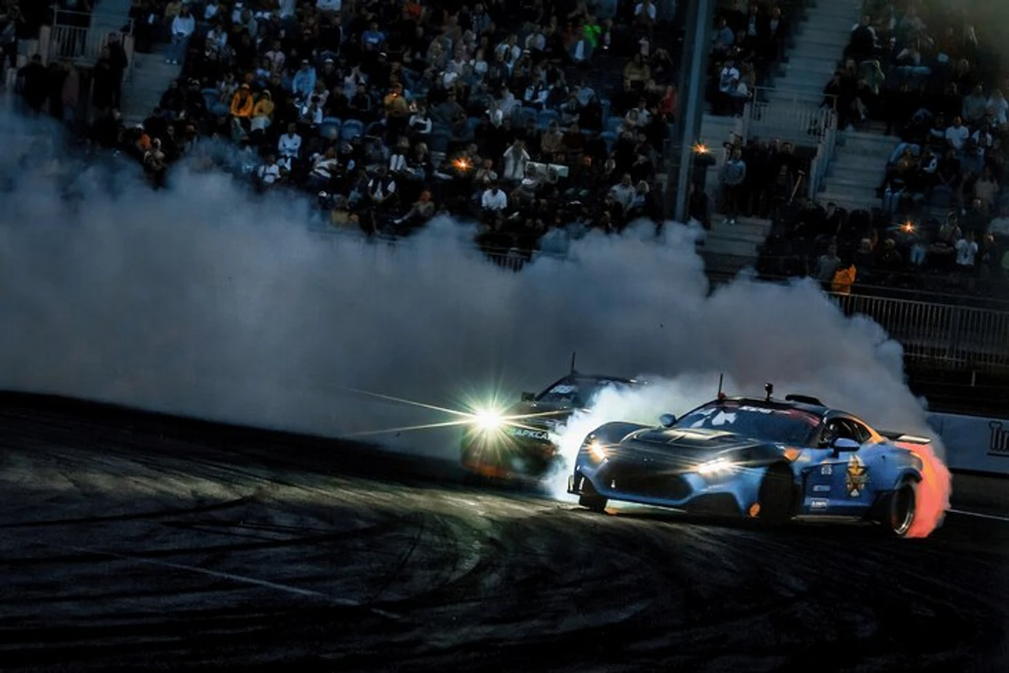 Финал сезона в российском дрифте – 🌊: у лидера отвалилось колесо, претенденты на титул попали в аварии, за победу рубились до ночи