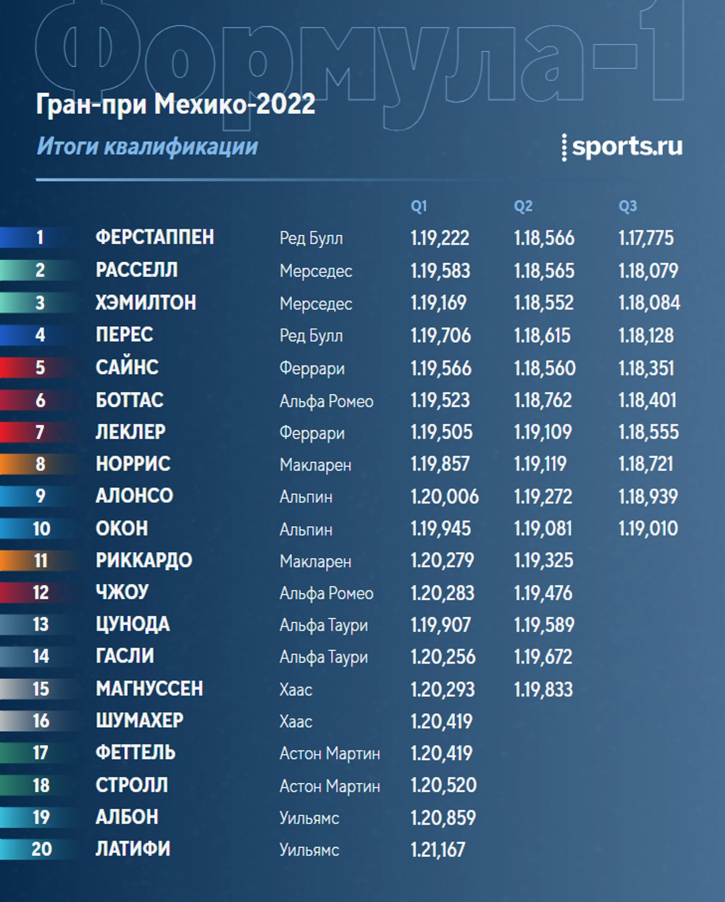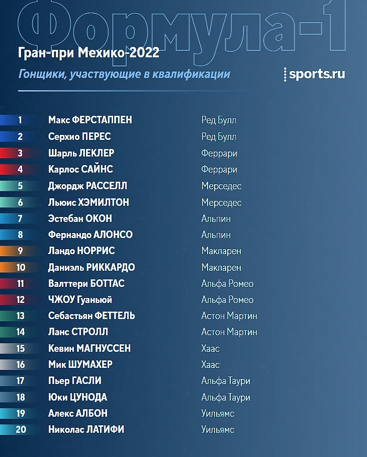 29 октября состоится квалификация к Гран-при Мехико, 20-му этапу «Формулы-1» сезона-2022.