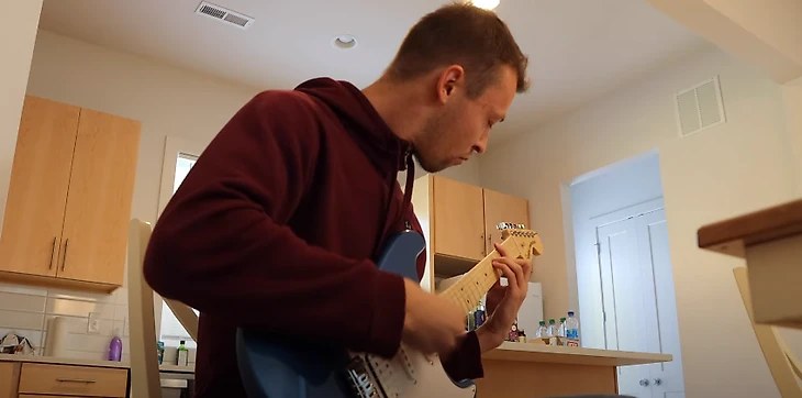 И наигрывает на гитаре вечерами перед сном.