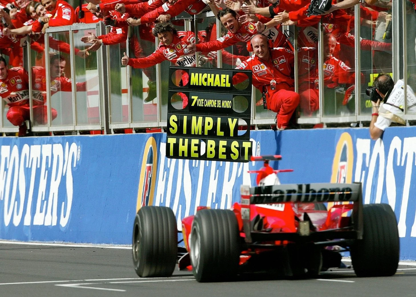 12 побед немца уместились в первые 13 гонок. Оставшиеся 4 гонки пришлись на последние 5 этапов того чемпионата, на которых была заметна сильная расслабленность Шумахера. В Бельгии Михаэля по ходу гонки обогнали как Монтойя, так и победивший в итоге Райкконен (что не помешало выиграть на этом этапе 7-й титул чемпиона). В Италии, Китае и Бразилии Красный Барон и вовсе допускал по ходу гонки развороты и другие нетипичные для себя ошибки. Таким образом, ни одну из этих гонок нельзя причислить к числу "потенциально победных".