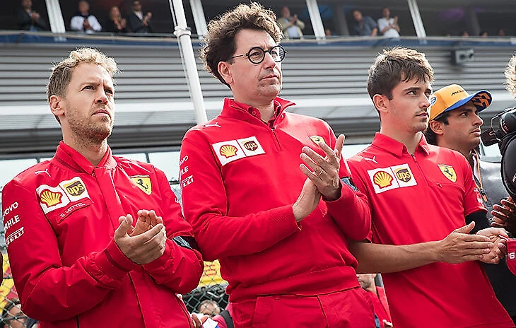 В 2019-м поражения «Феррари» выглядели обидными недоразумениями, к тому же новый руководитель нашел в письменном столе методички прежних боссов и объяснял неудачи строительством «нового и молодого коллектива», который обязательно всех победит, но не сейчас. Зато в свои заслуги он мог записать раскрытие Шарля Леклера, который сразу поехал быстрее уставшего Феттеля.