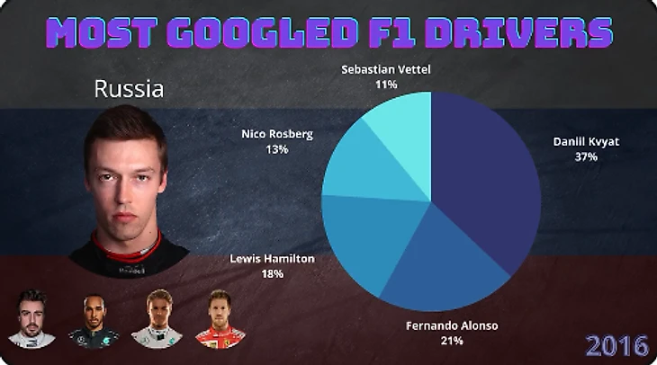 Кем из гонщиков «Ф-1» больше всего интересовались в России за 10 лет? Проверили запросы в Google – 5 раз побеждал Квят