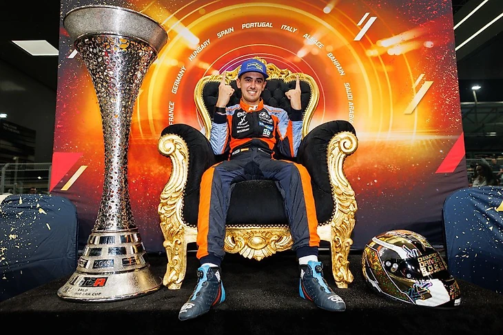 Вот так чествуют чемпионов в WTCR (World Touring Car Cup – чемпионат мира по кузовным гонкам в системе ФИА): золотой шлем (даже повычурнее, чем у Ферстаппена), черно-золотой трон и абсурдно огромный кубок.