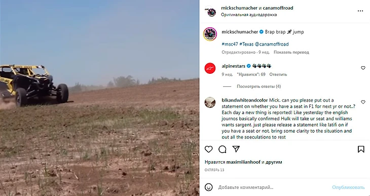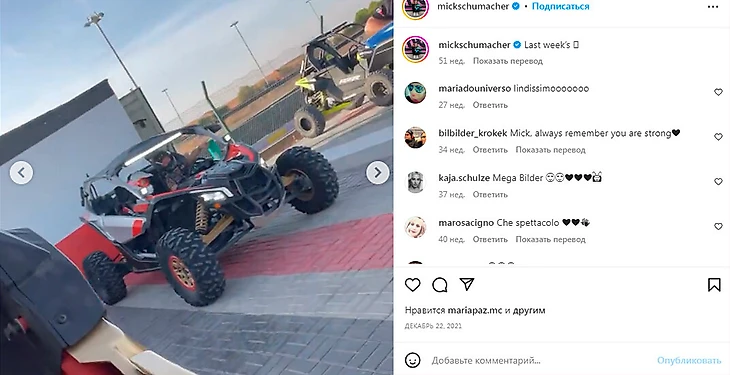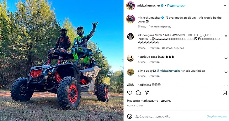 Внезапно эта страсть роднит сына Михаэля с бывшим напарником по «Хаасу» Никитой Мазепиным – тот тоже обожает заезды на багги по бездорожью!