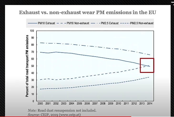Вообще в последние годы в Европе загрязнения от выхлопов практически сравнялось с выбросами, не связанными напрямую со сгоранием внутри мотора: