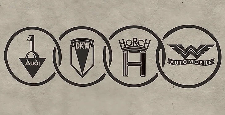 На заре XX века «Ауди» появилась как независимый бренд, но к началу 30-х оказалась на грани разорения. То вообще был сложнейший период для экономики Германии и местного автопрома. Поэтому в 1932 году четыре немецкие марки слились в один концерн. Помимо «Ауди» в его состав вошли «ДКВ», «Вандерер» и «Хорш». Перекрещенные кольца символизируют четыре бренда, объединенные одним автомобильным союзом – буквальный перевод «Ауто Унион».