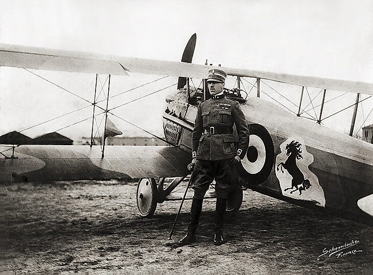 Франческо считался главным асом итальянских военно-воздушных сил — 34 подтвержденные победы. Фюзеляж его «Спада» украшала вставшая на дыбы лошадь.