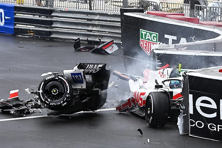 Разваленный надвое болид Мика Шумахера на Гран-при Монако