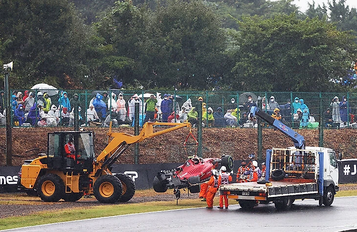 Гонка на мокрой трассе довольно быстро встала на паузу – Карлос Сайнс улетел в стену. Не успели судьи остановить заезд красным флагом, как на трассе появился трактор – в который из-за плохой видимости чуть не врезалось сразу несколько пилотов. Ближе всех к аварии оказался пилот «Альфа Таури» Пьер Гасли.
