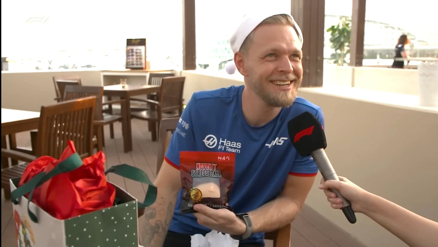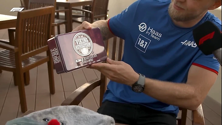 С черно-оранжевым флагом у Кевина в 2022-м установилась особая связь: судьи трижды зазывали его в боксы из-за слегка поврежденного антикрыла на внеплановые ремонты и тем самым портили стратегию на гонки. Второй – подпор для дверей, чтобы двери в офисе Гюнтера оставались в порядке (отсылка на знаменитый момент, когда Магнуссен с грохотом хлопнул дверью после столкновения с напарником на Гран-при Великобритании в 2019-м). Третий – набор для ухода за бородой «Революция викингов», который Кевин сразу с радостью протестировал.