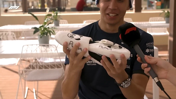 Алекса ожидали тапочки с рукописной подписью «Пума» на них. Судя по подошве, еще и не новые: «Худший подарок в моей жизни», – возмутился Албон.