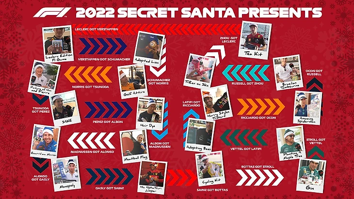 Вы уже распаковали свои новогодние подарки? А хотите узнать, что дарят гонщики «Формулы-1» друг другу? Спасибо традиционному видео от серии про игру в тайного Санту!