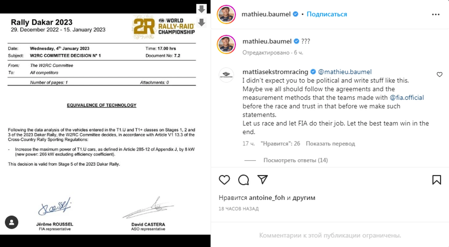 Ведь Нассер и его штурман Матье Бомель отреагировали очень бурно: запостили решение в соцсети с разгромными комментариями: