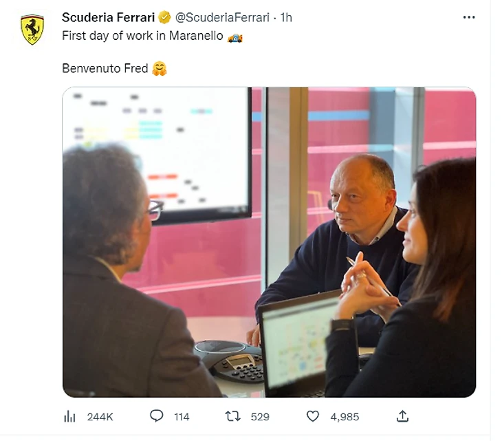 9 января 2023 года – первый рабочий день Фредерика Вассера на должности нового шефа «Феррари».