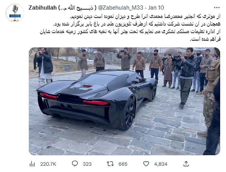 А директор ENTOP Мохаммед Реза Ахмади отметил других действующих в Афганистане лиц: «Я изо всех сил благодарю бога за то, что мы смогли закончить строительство первого автомобиля в Афганистане».