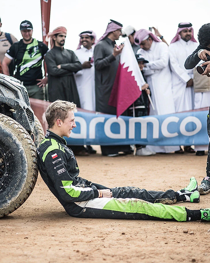 А это уже финиш – и рыдающий от счастья Эрик Гочал. Он только что выиграл свой первый «Дакар» (в классе Т4) – в 18 лет, войдя в историю как самый юный победитель рейда и этапа.