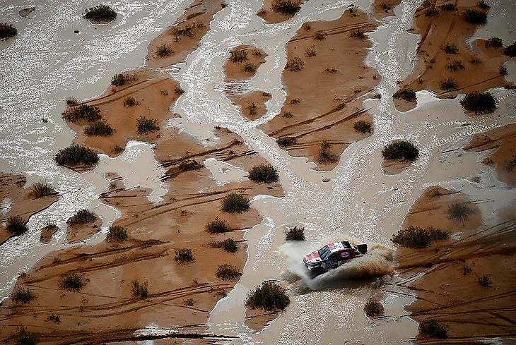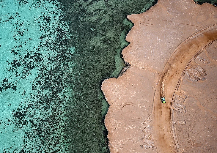 Лучшая фотка с вертолета по официальному выбору гонщиков и организаторов «Дакара»: аргентинский экипаж Себастьяна Хальперна в той же местности на побережье на прологе (аналоге квалификации).