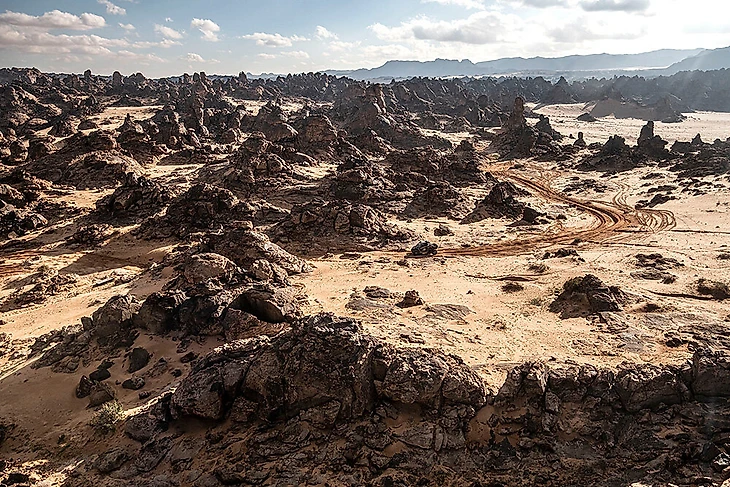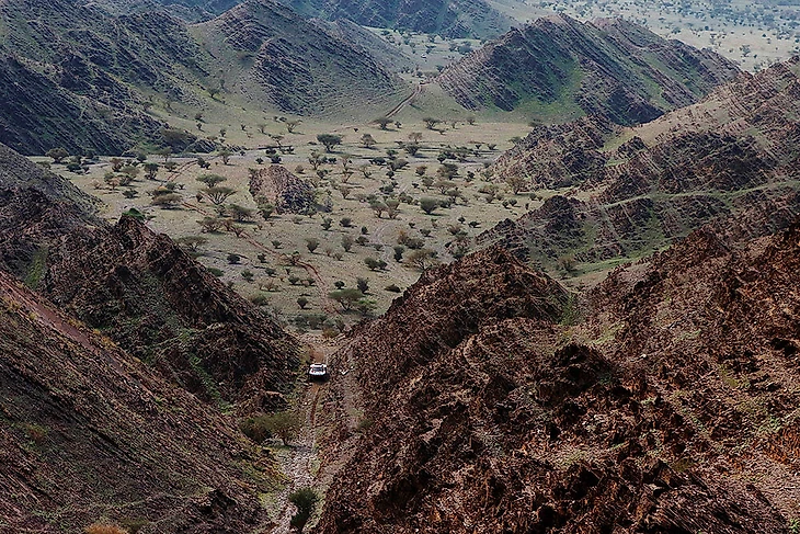 Внезапная смена пейзажа – второй этап до Аль-Улы. Да, зимой Саудовская Аравия и такая, а на этих скалах и камнях пробиты десятки колес.