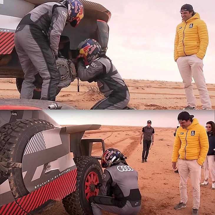 Карлос Сайнс-старший пробил на одном таком колесо – и чинил машину на глазах сына. Почему пилот «Феррари» не помог? Это строжайше запрещено под страхом дисквалов – судьи расследовали гонщика «Ауди» даже за помощь в закрытии двери!