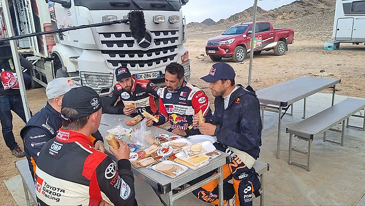 Привал на бивуаке без купюр: в центре – победитель в классе внедорожников и по совместительству катарский шейх.