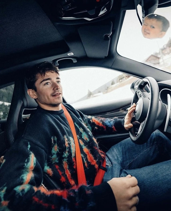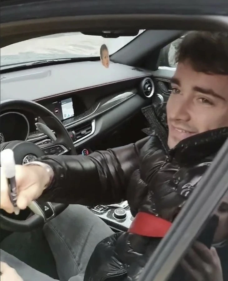 Однако фанатов из России, наверное, больше всего поразят кадры из его «Альфа Ромео», в которой Шарль устроил зимнее ралли для тренера и друзей: