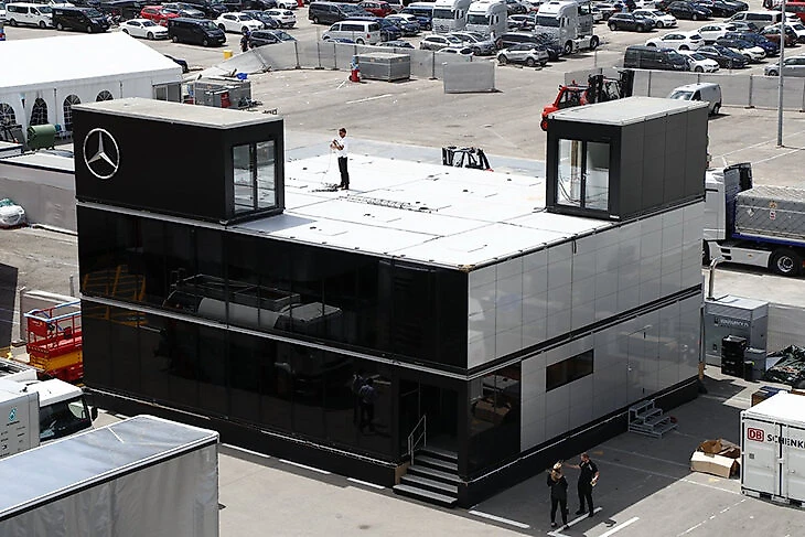 Интересный факт и, пожалуй, единственная положительная черта в логистике и экономике современной «Ф-1»: из-за ковида трехэтажные моторхоумы команд превратились вот в такие маленькие контейнеры.