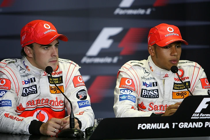 Из-за того, что напарником испанца стал чемпион GP2 Льюис Хэмилтон, который с первой гонки стал выдавать высокие результаты, напряженность в McLaren резко возросла, поскольку оба гонщика боролись за титул и отбирали ценные очки друг у друга. Серия конфликтов, в том числе странный квалификационный инцидент в Венгрии и драма вне трассы с шпионским скандалом, только добавили остроты сюжету, а Кими Райкконен в итоге опередил и Хэмилтона, и Алонсо в борьбе за титул на одно очко. Алонсо вернулся в Renault в 2008 году, а Хэмилтон остался в McLaren и выиграл титул.