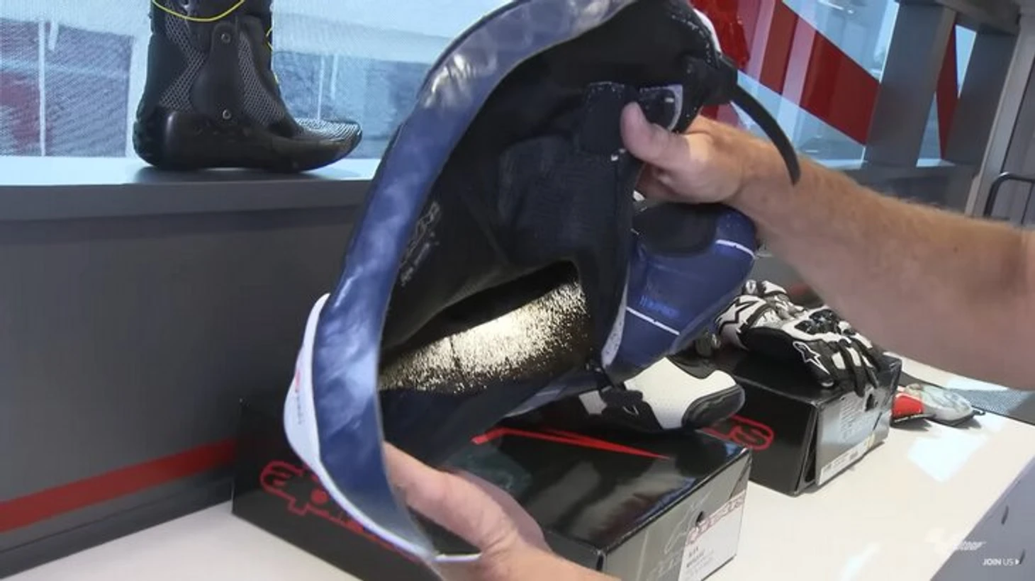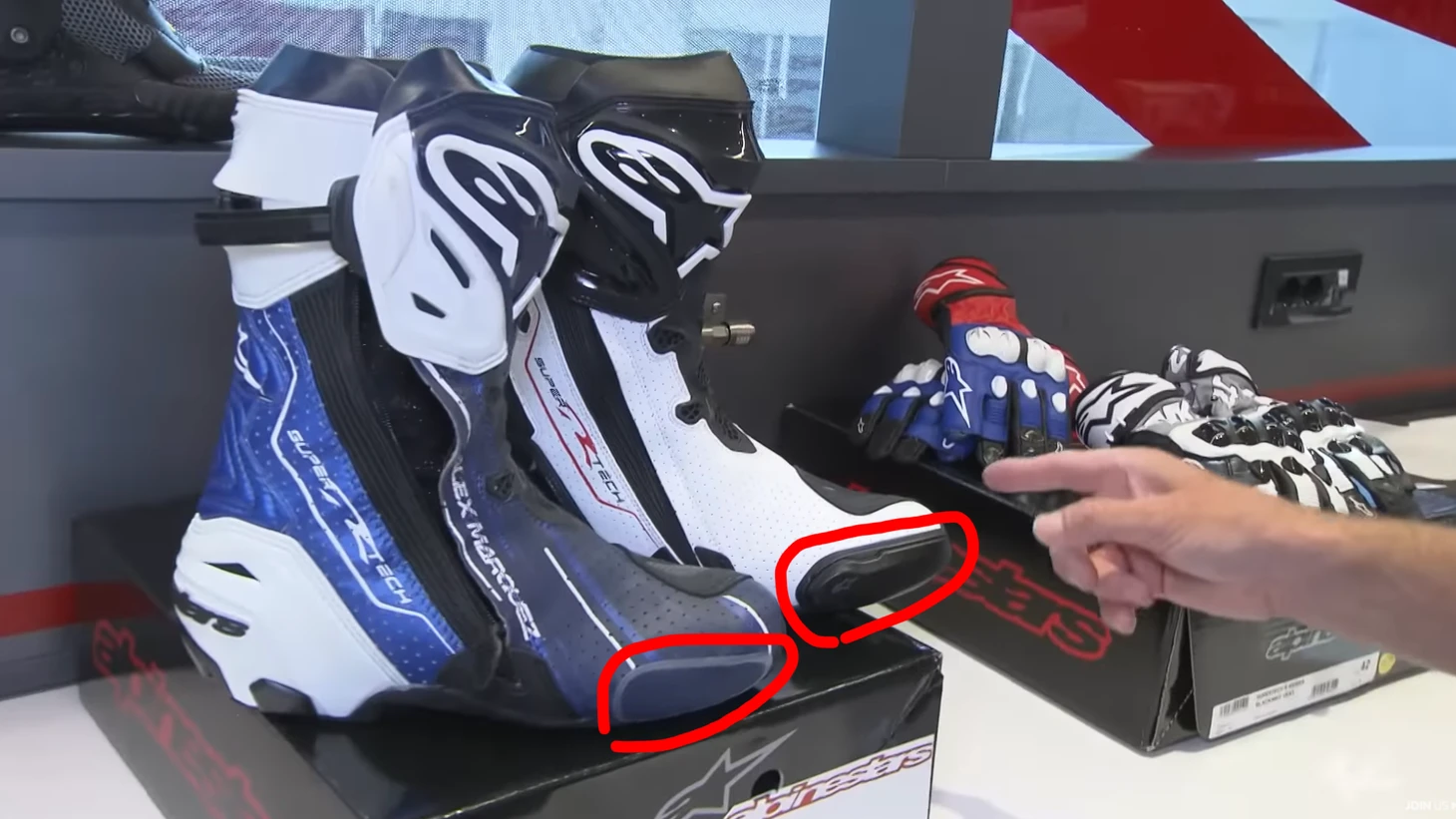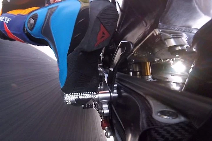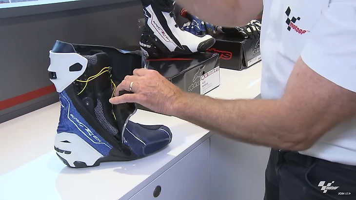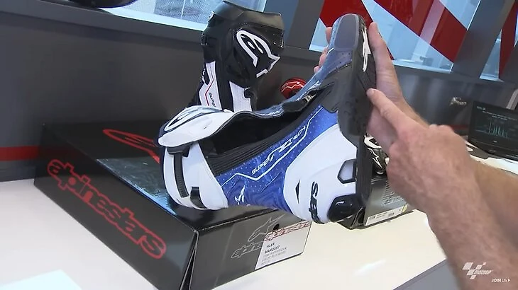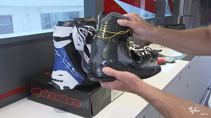 Перейдем к ботинкам. Они тоже индивидуальны, как и костюмы, и тоже зависят от гоночного стиля. Подобно налокотникам, защита на ботинках варьируется от гонщика к гонщику.
