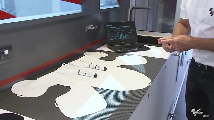 А во время гонки она так же снижает вибрацию от топливного бака, на котором лежат гонщики.